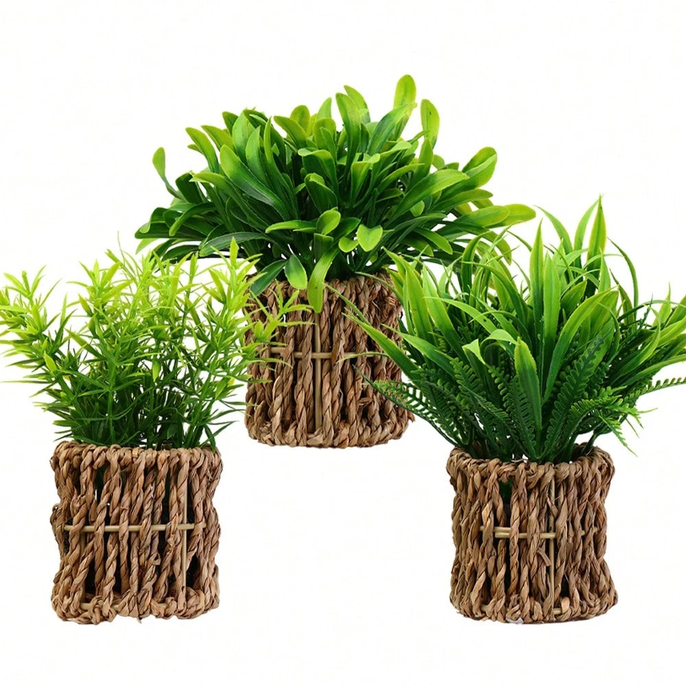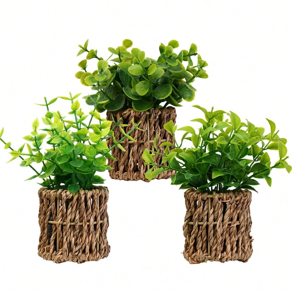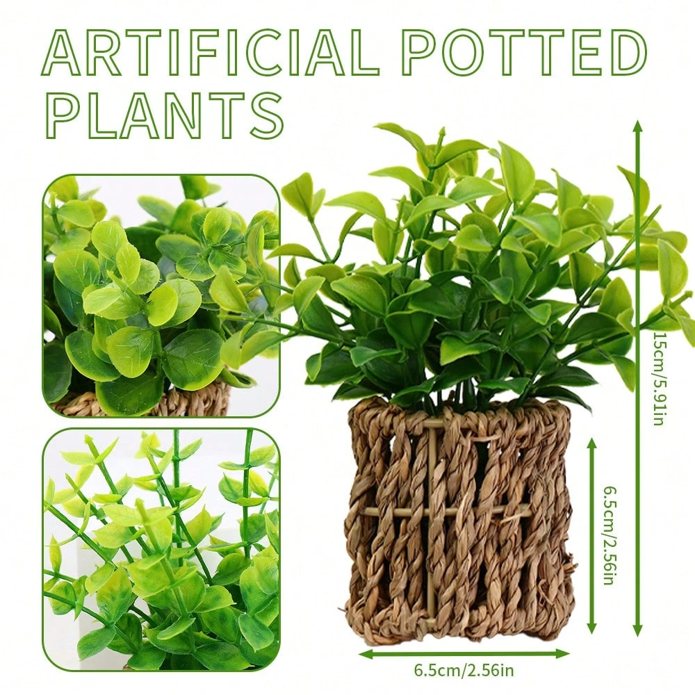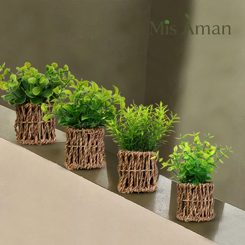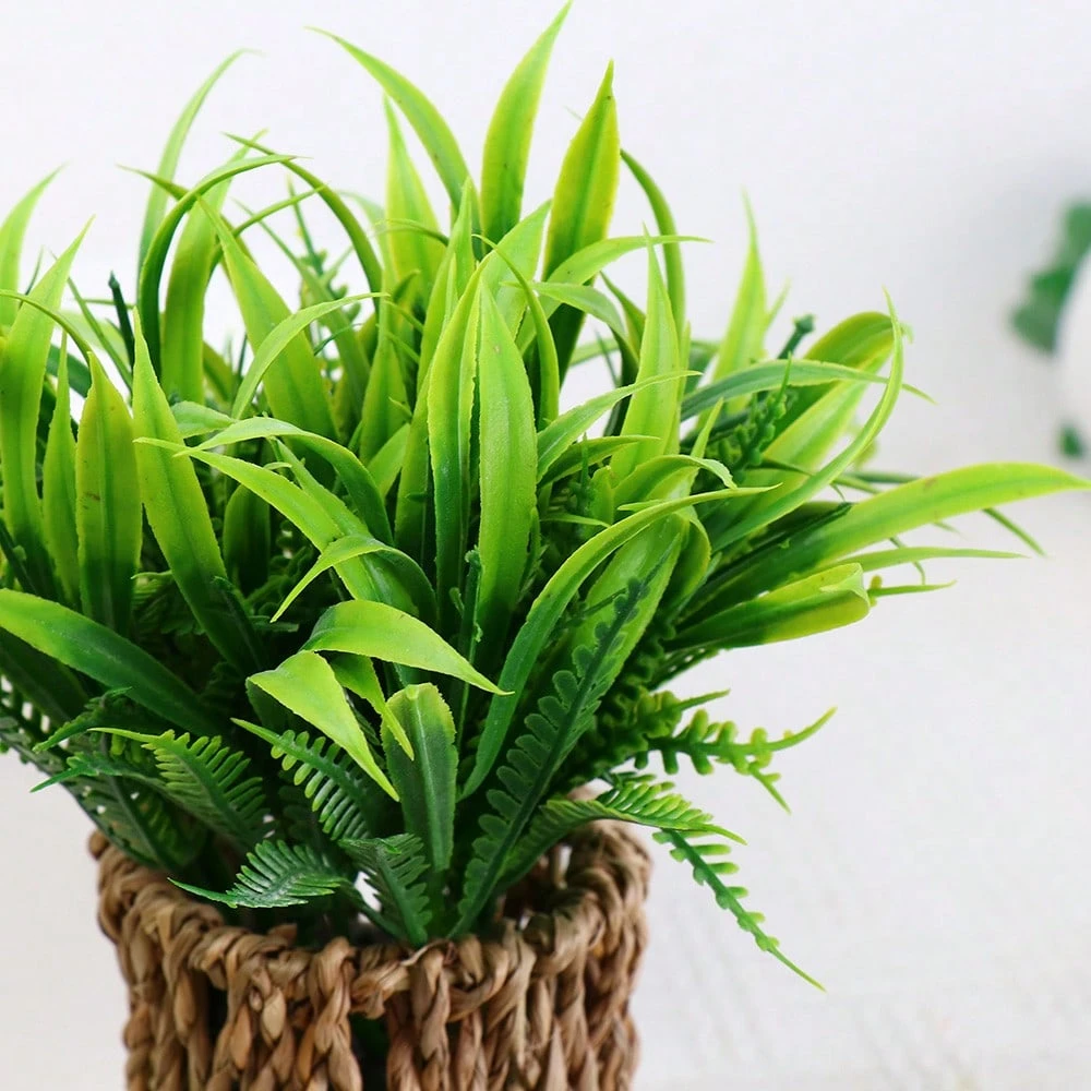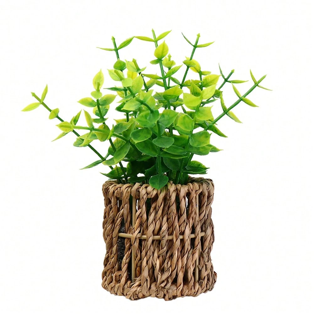Elevate your home or office décor with these Artificial Plants featuring seagrass handwoven planters. Combining farmhouse charm with effortless greenery, the plastic eucalyptus foliage offers a lifelike look without maintenance. Perfectly sized for room shelves, tabletops, or desks, these plants add a fresh, natural touch to any space. Their artisanal planters also make them an ideal gift, blending rustic style with modern convenience for long-lasting indoor beauty.