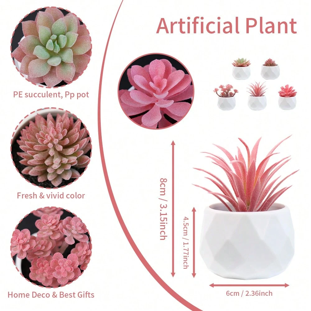 Artificial Succulent Plant Set - Artificial Office Desk Plants - Realistic Succulent Plants - Mini Pink Decorations For Bedroom, Bathroom, Office Shelves, Thanksgiving Decorations